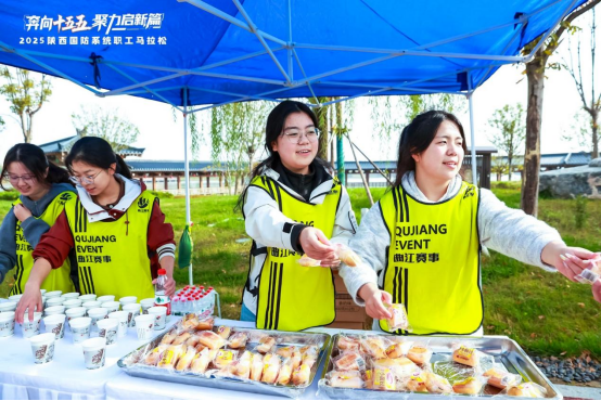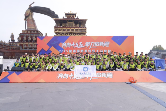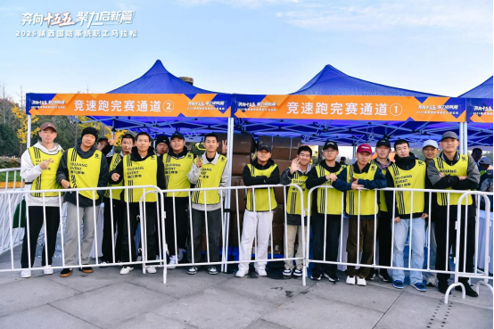 11月1日,由陕西省国防工会主办、中陕核工业集团有限公司等单位承办的2025陕西国防系统职工马拉松赛在西安昆明池•七夕公园鸣枪开跑,西安航空学院150名学子组成志愿服务队,以专业、高效的服务为赛事保驾护航,用青春力量诠释西航担当,展现新时代大学生风采。