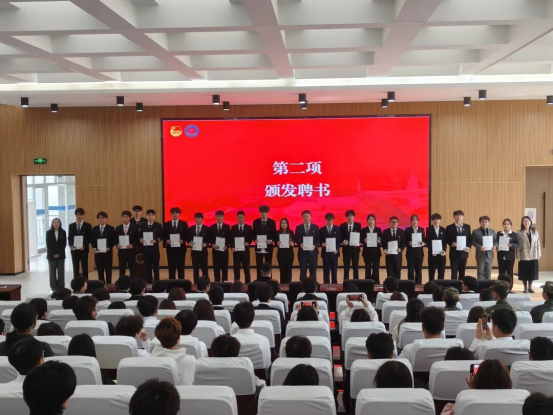 校团委副书记裴蕾和校团委李吟雪老师为2024届优秀团学干部颁发荣誉聘书,表彰其辛勤付出。